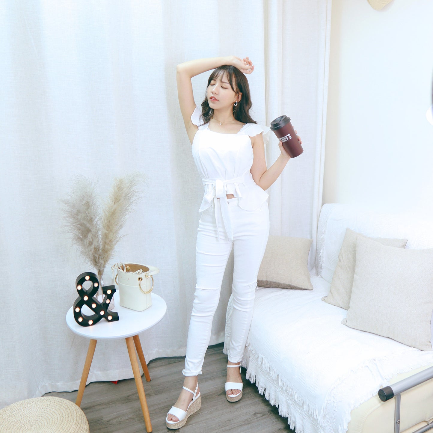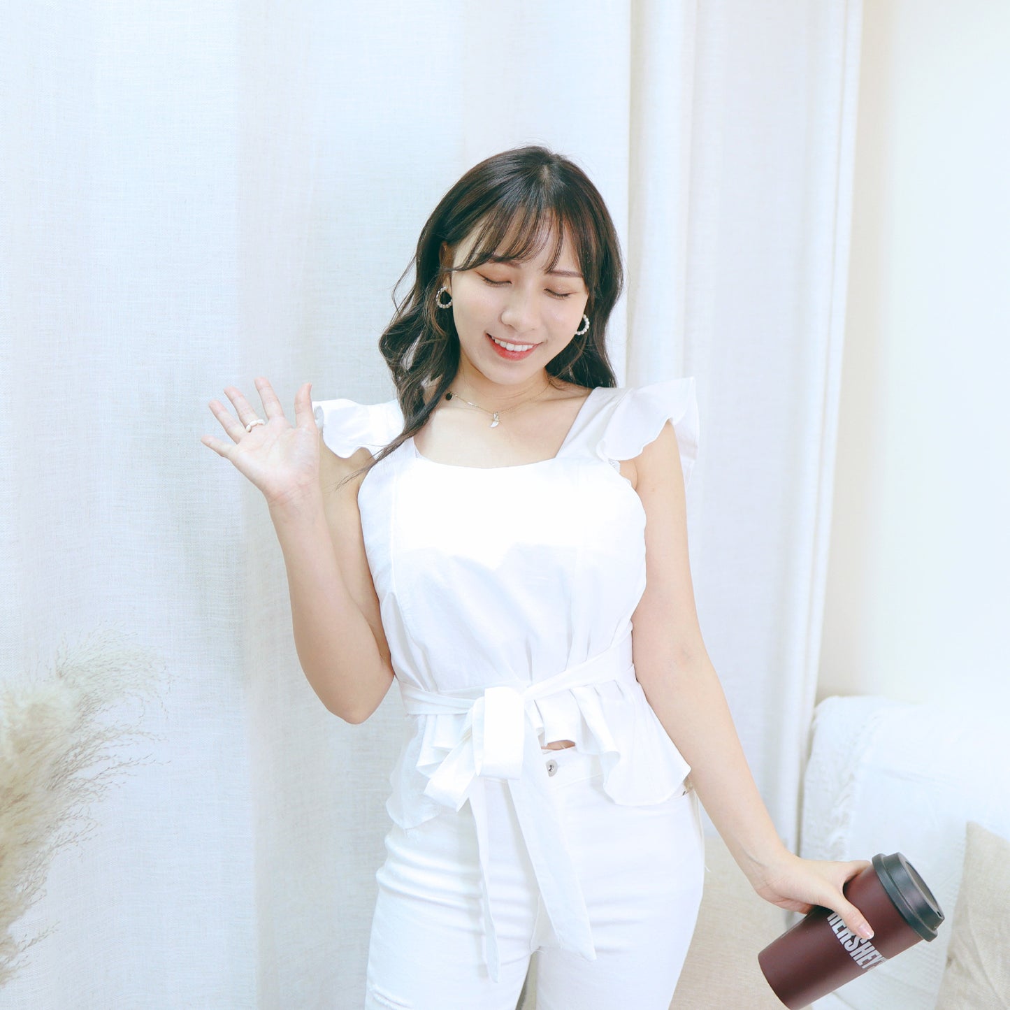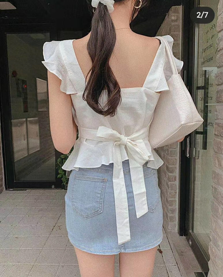 這款少女感超強的!有荷葉邊設計可以修飾手臂🌼下擺都有做RUFFLE 小短版設計,蝴蝶結可以綁前/後都一樣好看啊!這款還十分適合大胸的妹子🌸